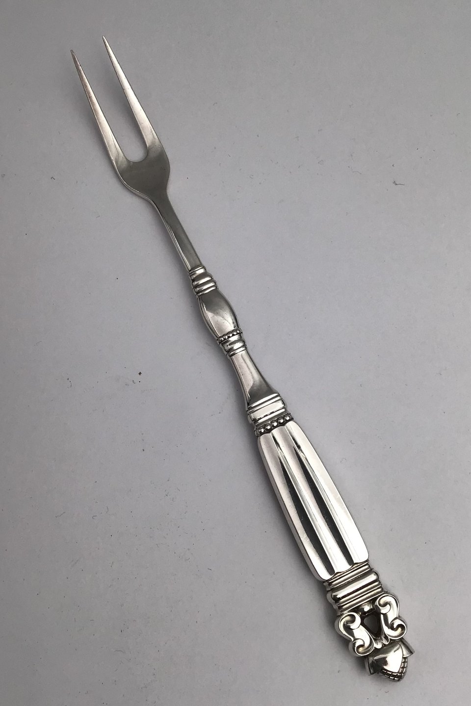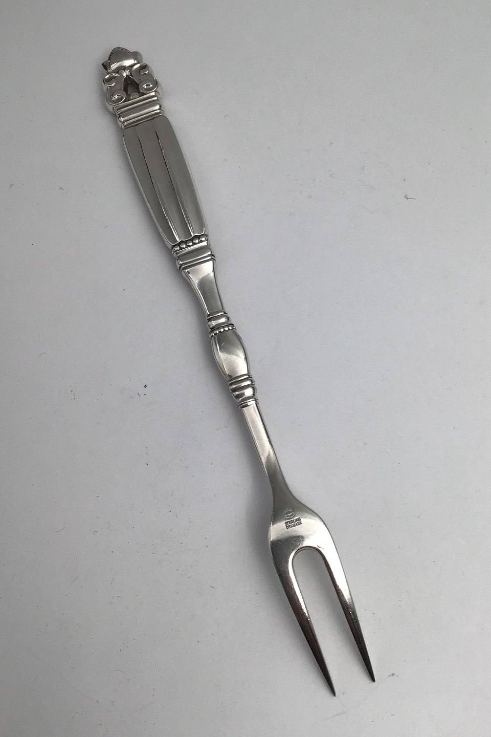 Georg Jensen Konge Sterling Sølv Kødgaffel helsølv No. 142. Måler 23 cm.