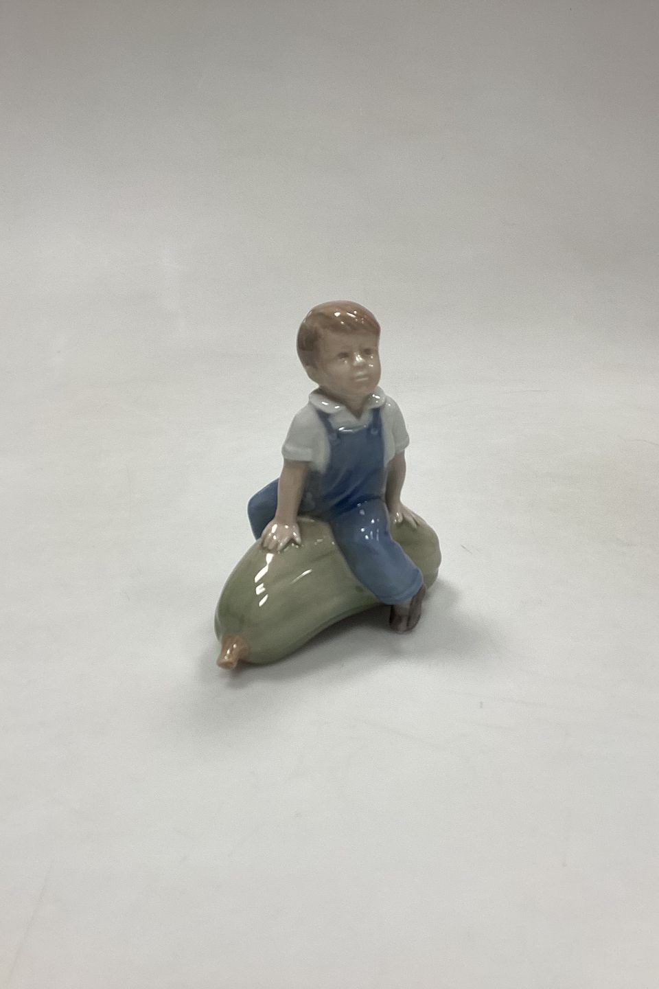 Royal Copenhagen Figur Dreng på græskar No. 4539 eller 153. Designet af J.M. Nissen. Måler 12 cm / 4,72 in.