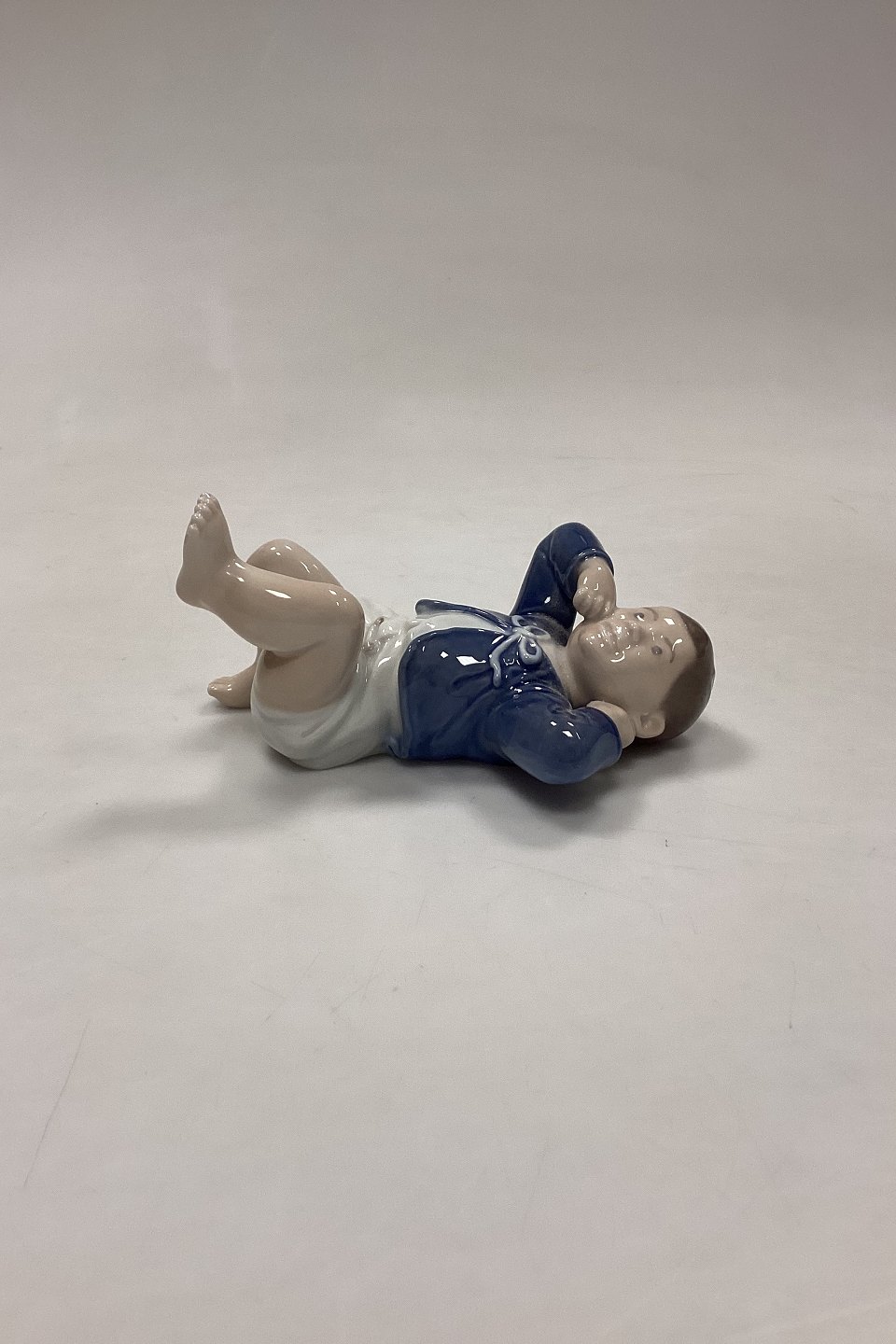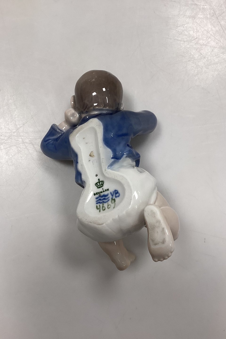 Royal Copenhagen Figur Liggende Barn No. 4669. Designet af John Galster. Måler 8 cm x 14 cm / 3,14 in. x 5,51 in. 2. Sortering