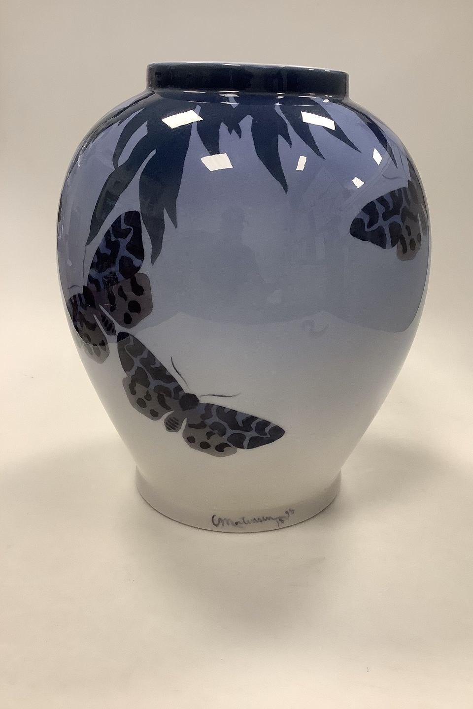 Royal Copenhagen Art Nouveau Unika Vase af Carl Mortensen med Sommerfugle fra 1898 No 6833
