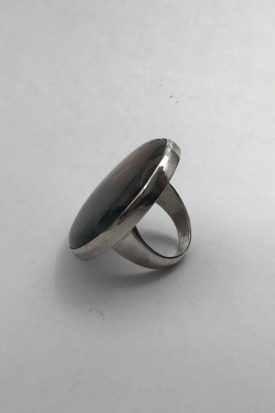 Georg Jensen Sterling Sølv Ring No. 90 D (Orange Grå meleret Sten) Måler 3.4 cm x 2.7 cm (1.33 inch x 1.06 inch) Ring Str. 50 (US 5 1/4) Vægt 16.8 (0.59 oz)