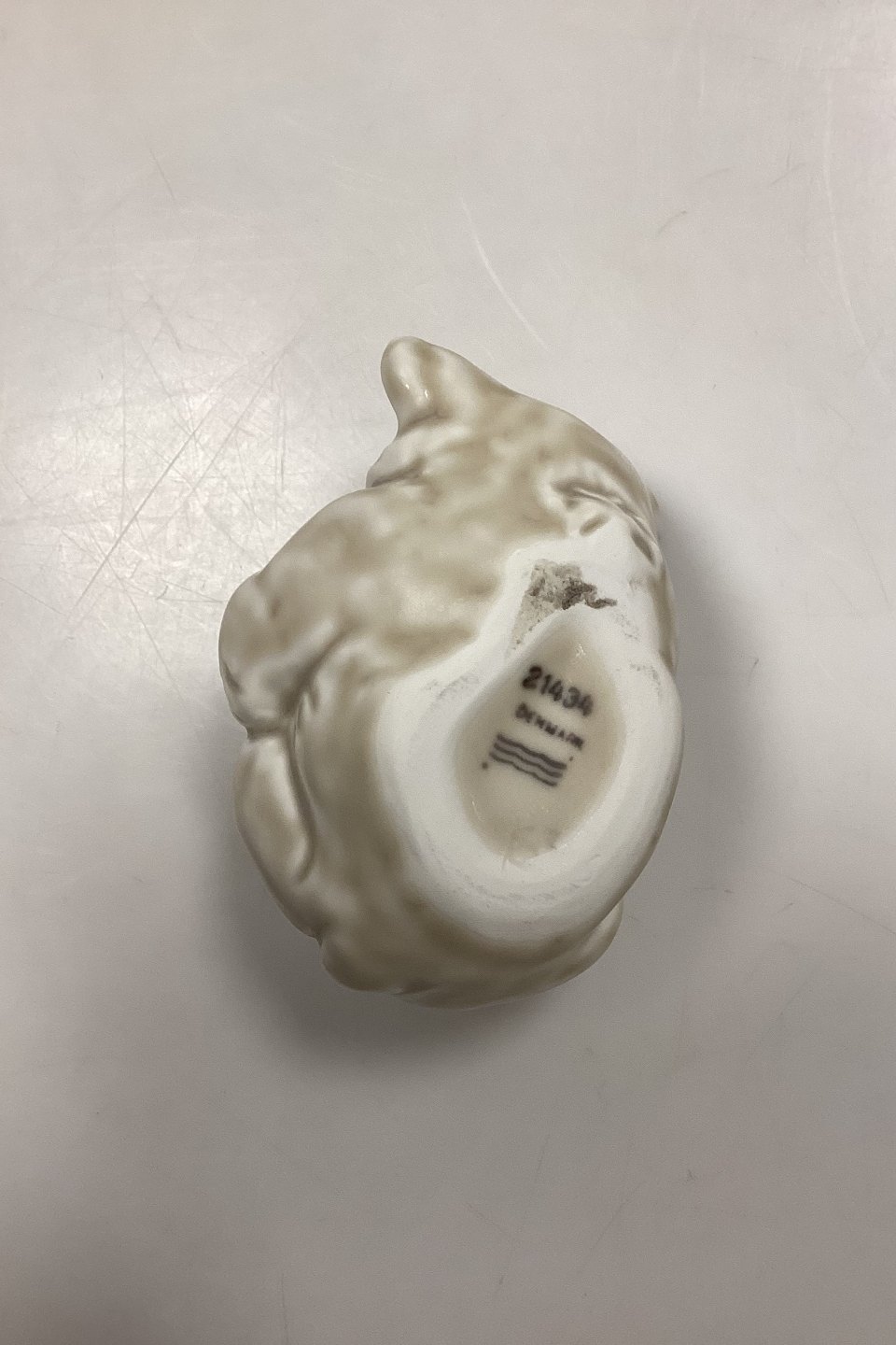 Royal Copenhagen Stentøjsfigur Hvid Bjørneunge No. 21434. Designet af Knud Kyhn. Mat glasur i hvidbeige nuancer.