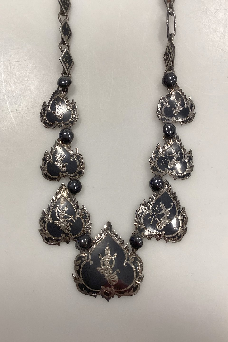 Med Hindu/Buddha illustrationer i kædeornamenterne