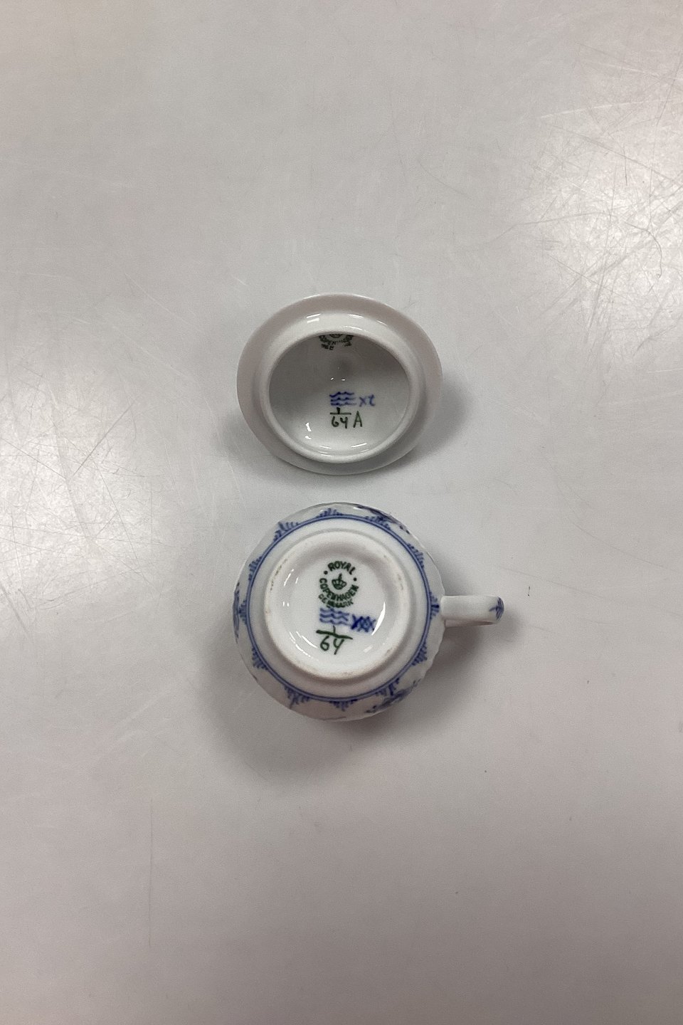Royal Copenhagen Musselmalet Riflet Crémekop No. 64 med låg No. 64A.