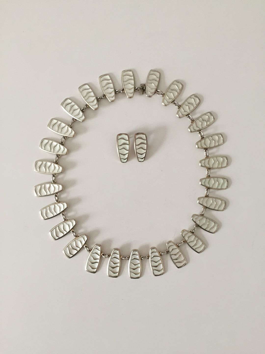David Andersen Sterling Sølv med Emalje Halskæde og Øreclips