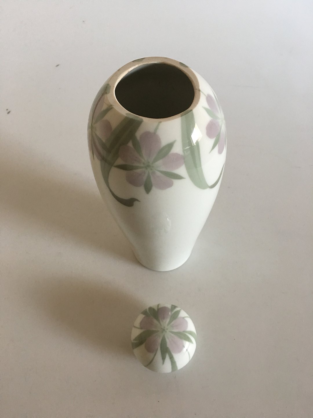 Rørstrand Art Nouveau Unika Lågvase af Karl Lindström. Måler 25cm høj. Standen er god. Men selve vasen er slibet ned. Om det er gjort på fabrikken eller ej, ved jeg ikke. Men ser ud som om det er gjort på fabrikken, for det hele passer.