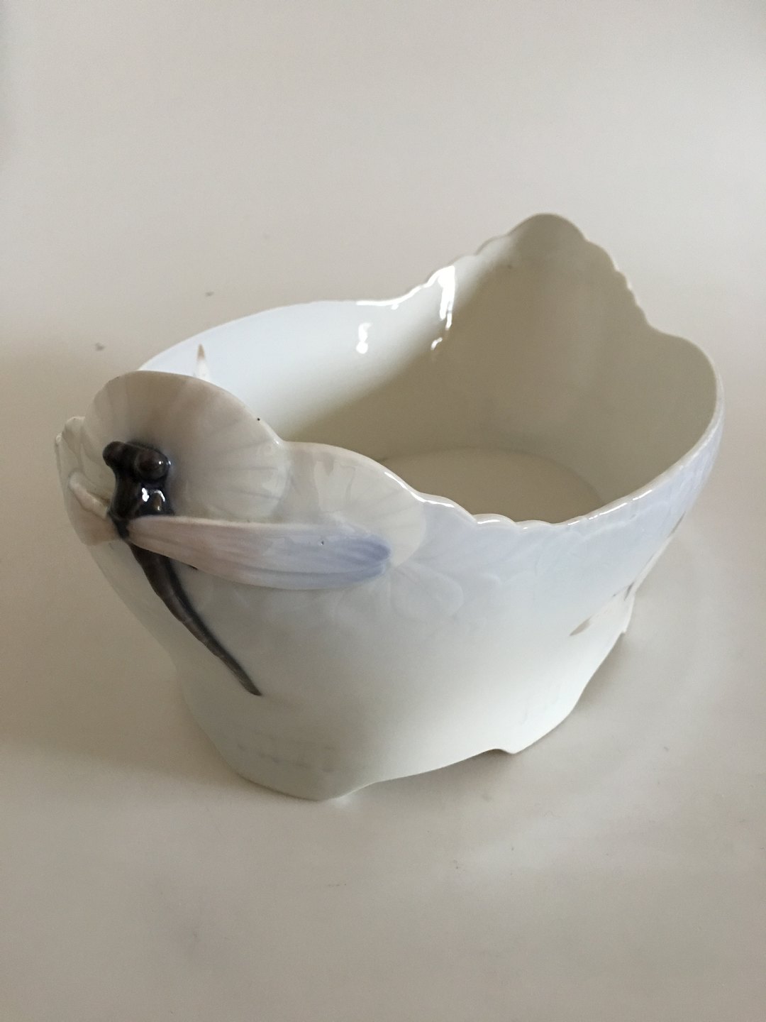 Royal Copenhagen. Skønvirke jardiniere af porcelæn nr. 1065/712. Dekoreret med relief, bemalet med sommerfugle, mælkebøtter og guldsmede. Tegnet af Arnold Krog 1899 til Margurit stellet, som vistes første gang i Paris 1900 på Verdensudstillingen, som blev kulminationen på Art Nouveau. Ca.1900. L. 41,5 cm.
