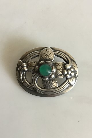 Georg Jensen Sterling Sølv Broche med grøn sten No 138