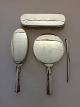 Georg Jensen Sterling Sølv Harald Nielsen Spejl, bøste, håndbøste og kamNo 134. Spejl måler 23cm, bøste 22,4cm, håndbøste 17,2cm og kam 16,7cm I brugt stand.