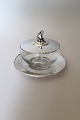 Georg Jensen Sterling Sølv og Glas Kaviar Skål med låg og underfad No 610. Fad måler 15,8cm, låg 11cm og 10,5cm høj.