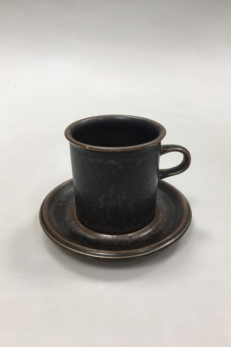 Arabia Stentøj Ruska Kaffekrus med Underkop. Måler 8 x 8.5 cm (3 5/32 x 3 11/32 in).