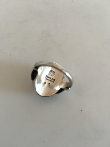 Georg Jensen Sterling Sølv Ring No 51 med Grøn Agat. Ringstørrelse 44. Vejer 6 g. Fra efter 1945.