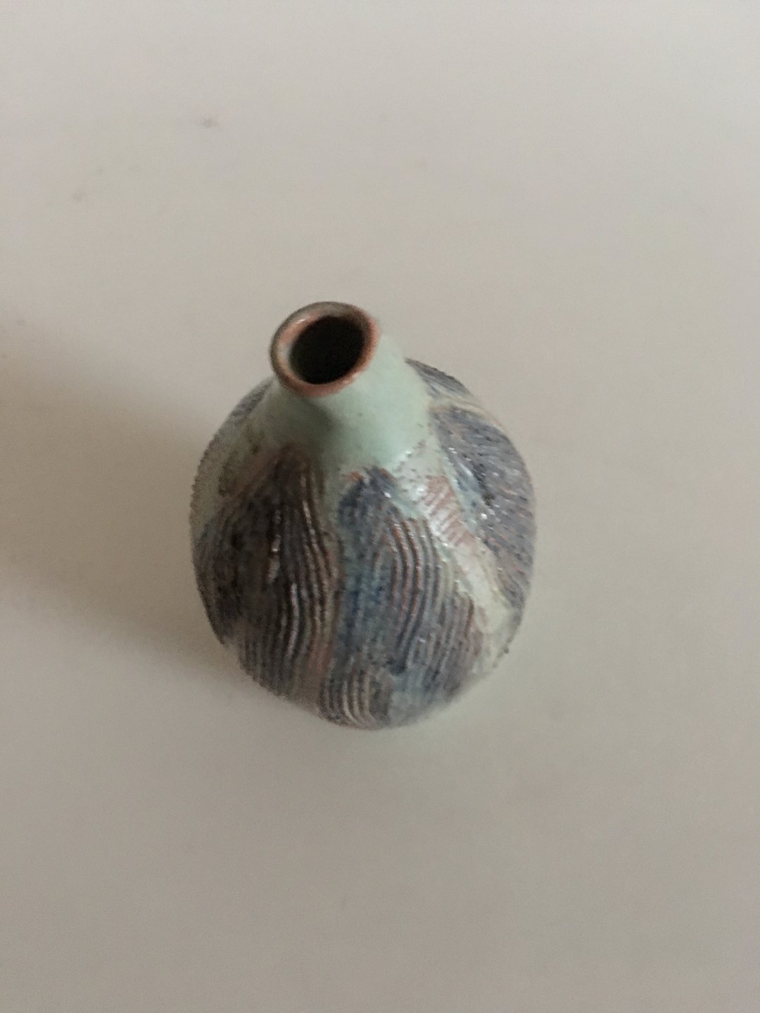 Lille Stentøjsvase (ukendt). 10 cm H. I fin stand.