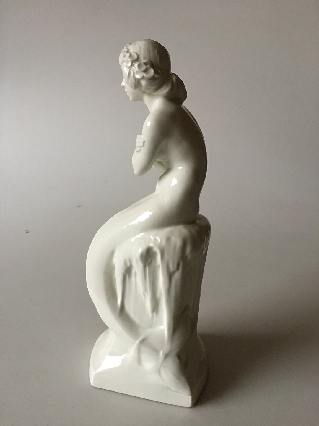 Royal Copenhagen Havfrue på Is pedestal, hvid No 1210. Designet af Christian Thomsen. 1. Sort. I perfekt stand. 26 x 10 cm.