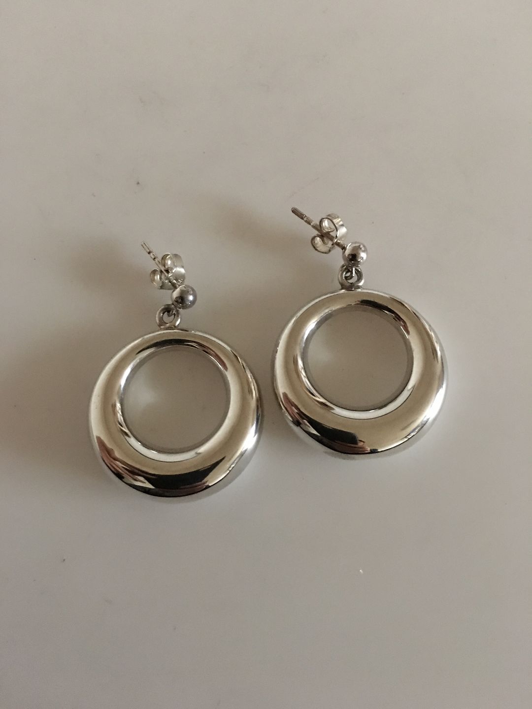 Georg Jensen Sterling Sølv Ørestikker No 199. Måler 2,5 cm Ø. Vejer tilsammen 12 gram. Fra efter 1945.