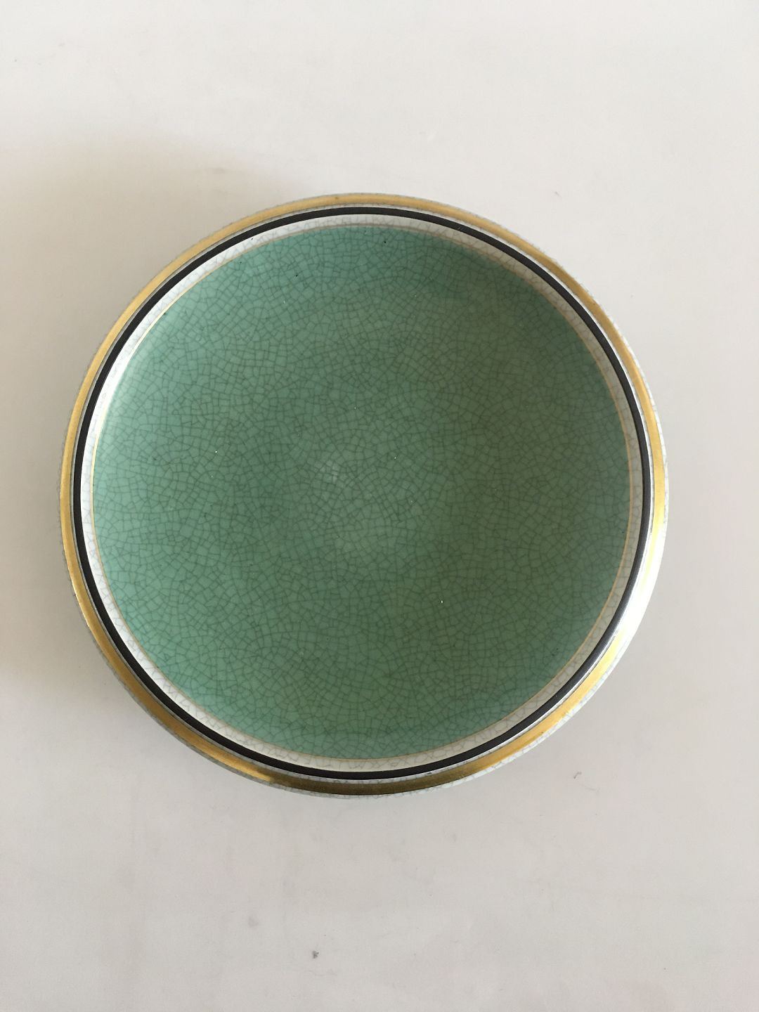 Royal Copenhagen Krakele Fadskål No 457/2568. Mintgrøn med Sort og Guldstribet Kant. 18 cm Ø. 1. Sortering. I perfekt stand.