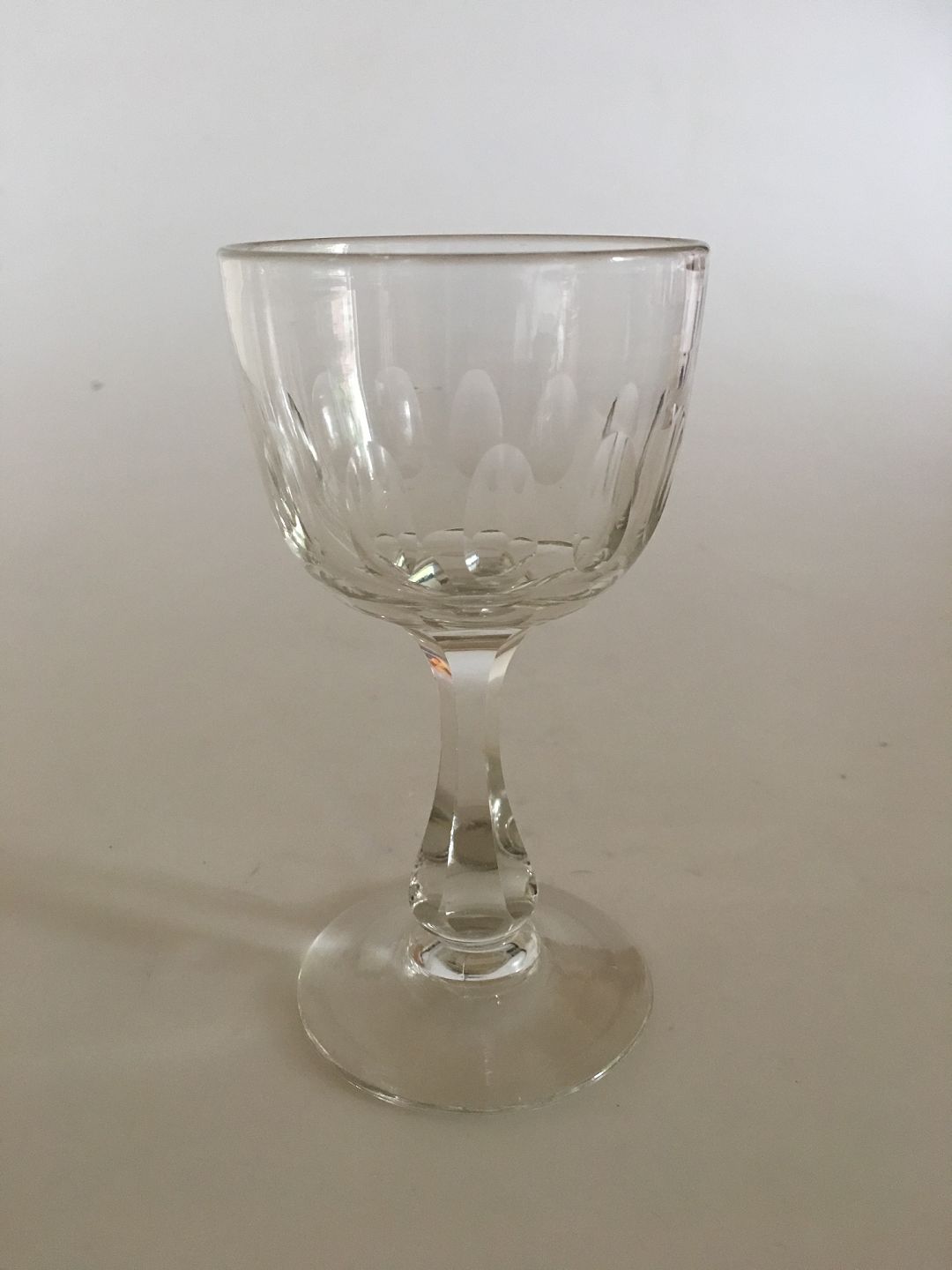 Holmegaard Derby Hvidvinsglas 13 cm H. 7 cm dia. Klart glas med oliv slibning og facet slebet stilk. Fra 1890-1950