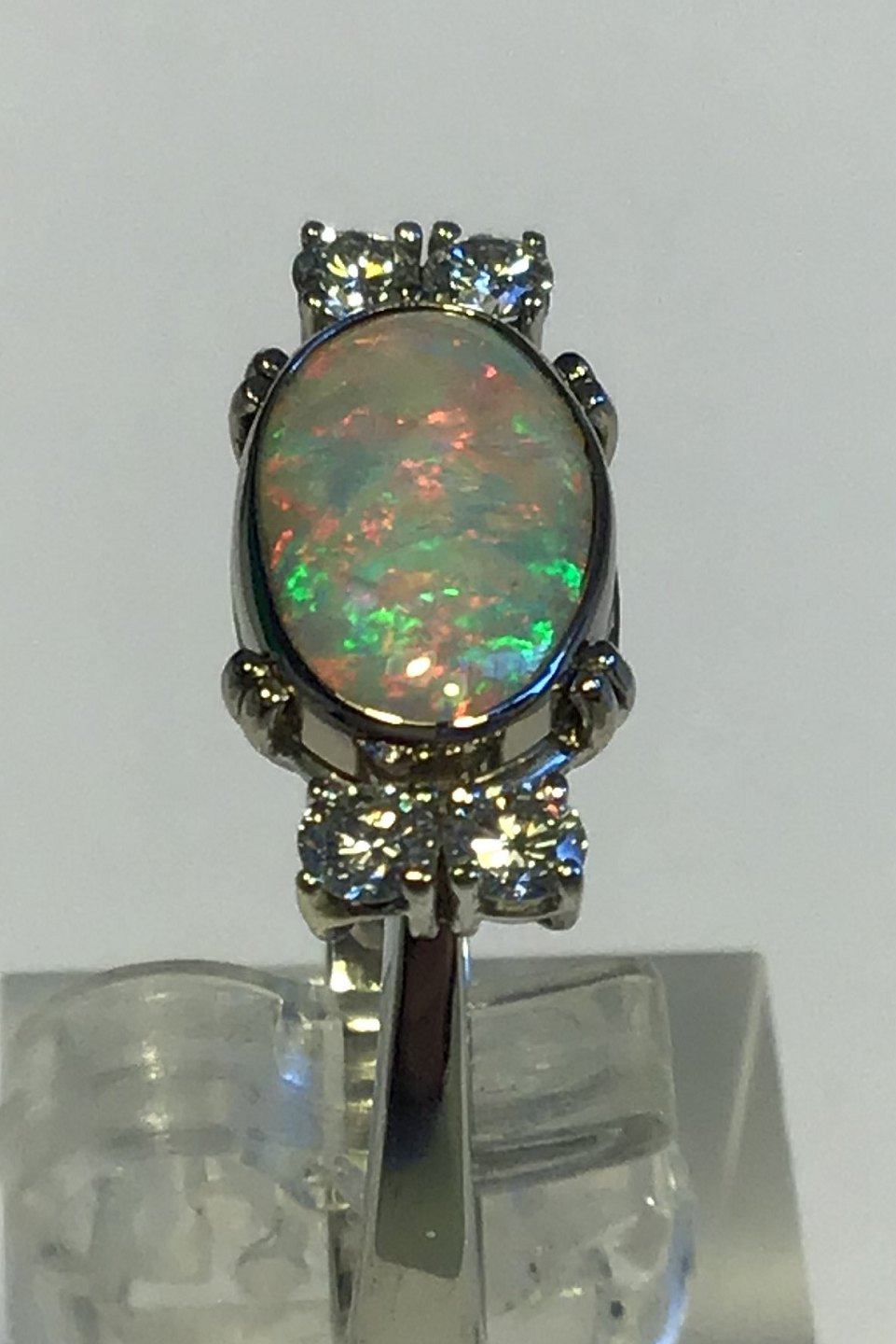 Georg Jensen 18 kt Hvidguld Ring Opal og Brillant Ringstr 45 Vægt 5,6 gr Stemplet GJ&W