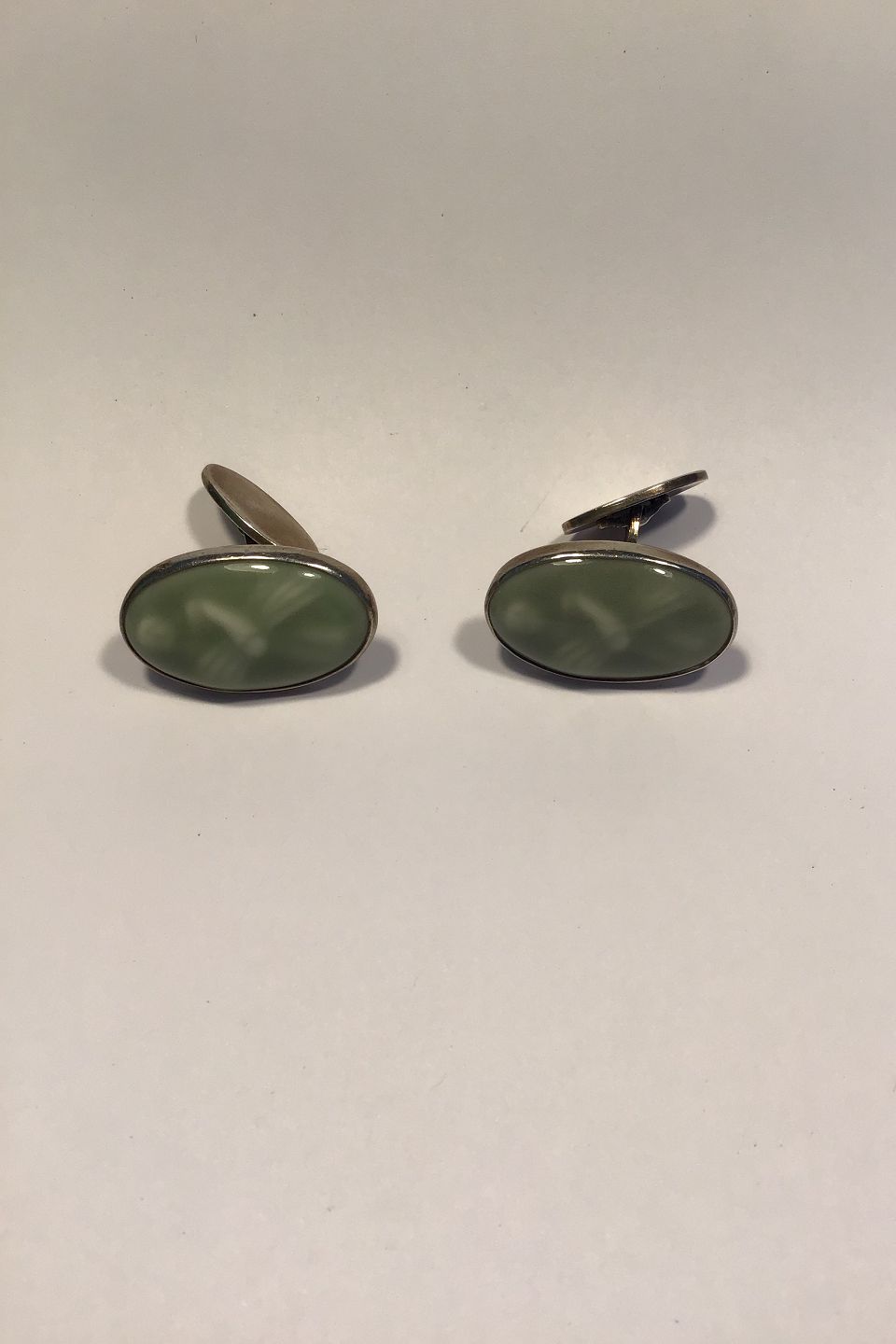 Royal Copenhagen Jais Nielsen Manchetknapper fra Dragsted Sølvsmedie I celadon glasur Måler 1.6 cm x 2.6 cm Original Æske