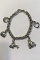 Georg Jensen Sterling Sølv Charm Armlænke. Med monterbare charms: Frø, Elefant, Delfiner og et Henning Koppel Hjerte samt Georg Jensen Logo. Måler 20.5 cm L. Vejer 46.7 gram.