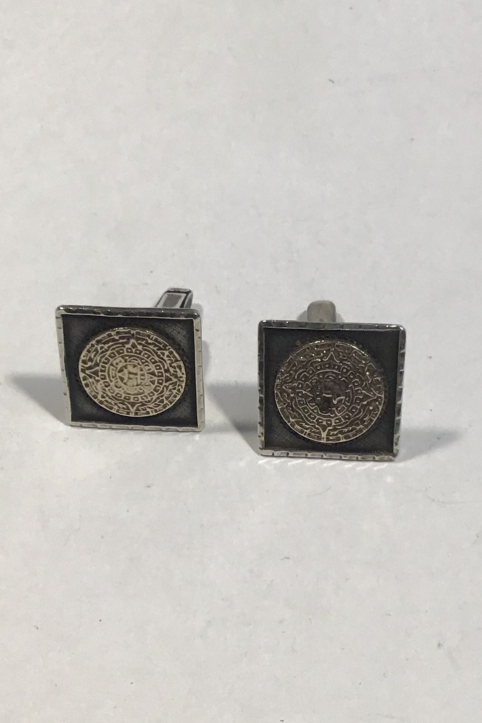Mexico Sterling Sølv/Guld Manchetknapper Aztec-motiv Måler 2 cm x 2 cm Vægt 16.1 gr