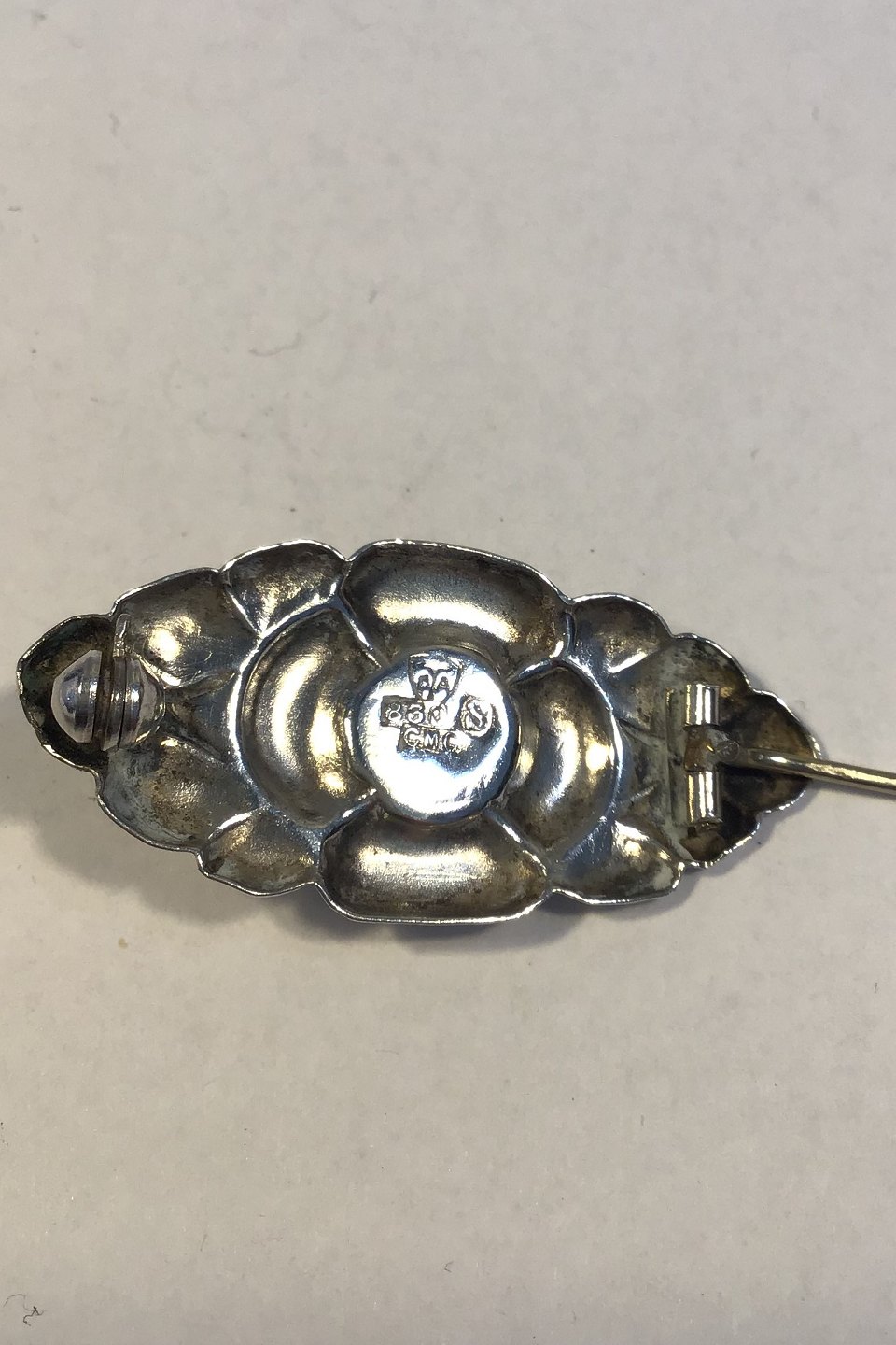 Carl M Cohr Art Nouveau Sølv Broche med Rav Måler 3.7 cm x 1.8 cm Vægt 3 gr