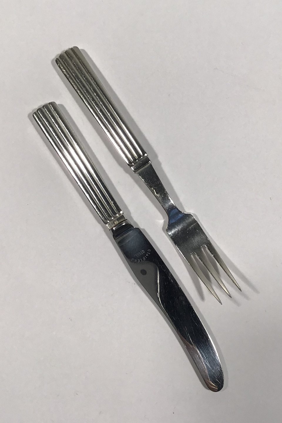 Georg Jensen Sterling Sølv Bernadotte Frugtbestik Måler Kniv 17 cm Gaffel 15.3 cm