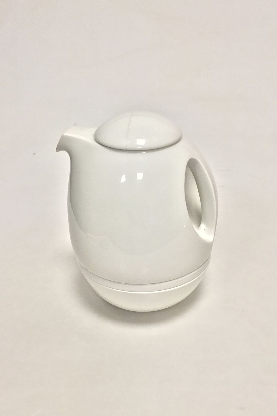 Royal Copenhagen hvid porcelæns kaffkande med låg, fad, æggebæger og skål i et. Låg med skader. H: 20 cm