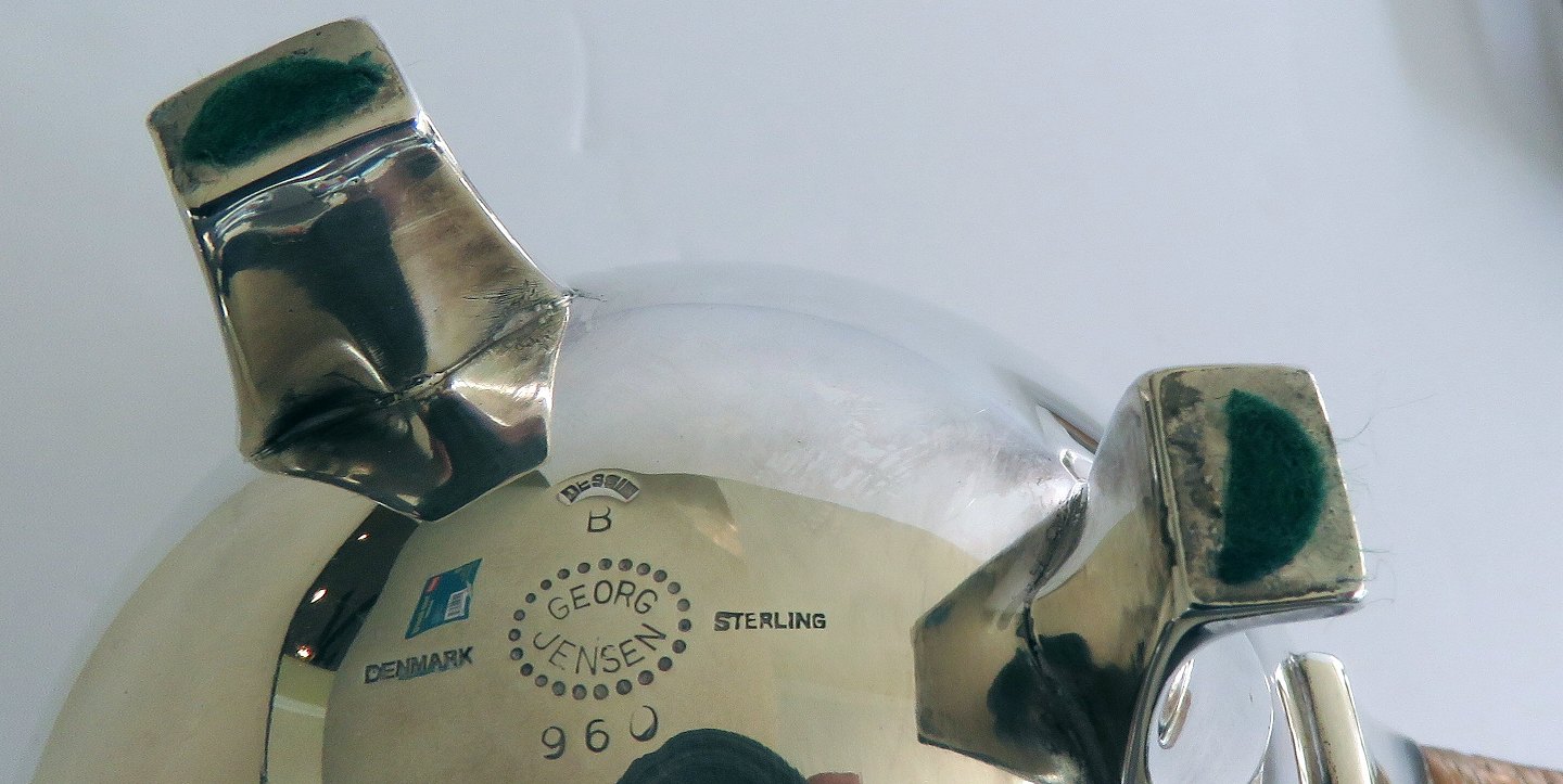 Georg Jensen Sterling Sølv Kaffekande, Thekande, Sukker, Fløde no 960 og stor bakke no 984.