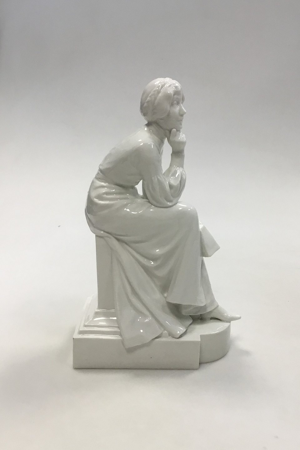Royal Copenhagen Blanc de Chine Figur, "Eftertænksom kvinde der læser" Designet af Christian Thomsen No 435. Måler 22 cm(8 21/32 in.)