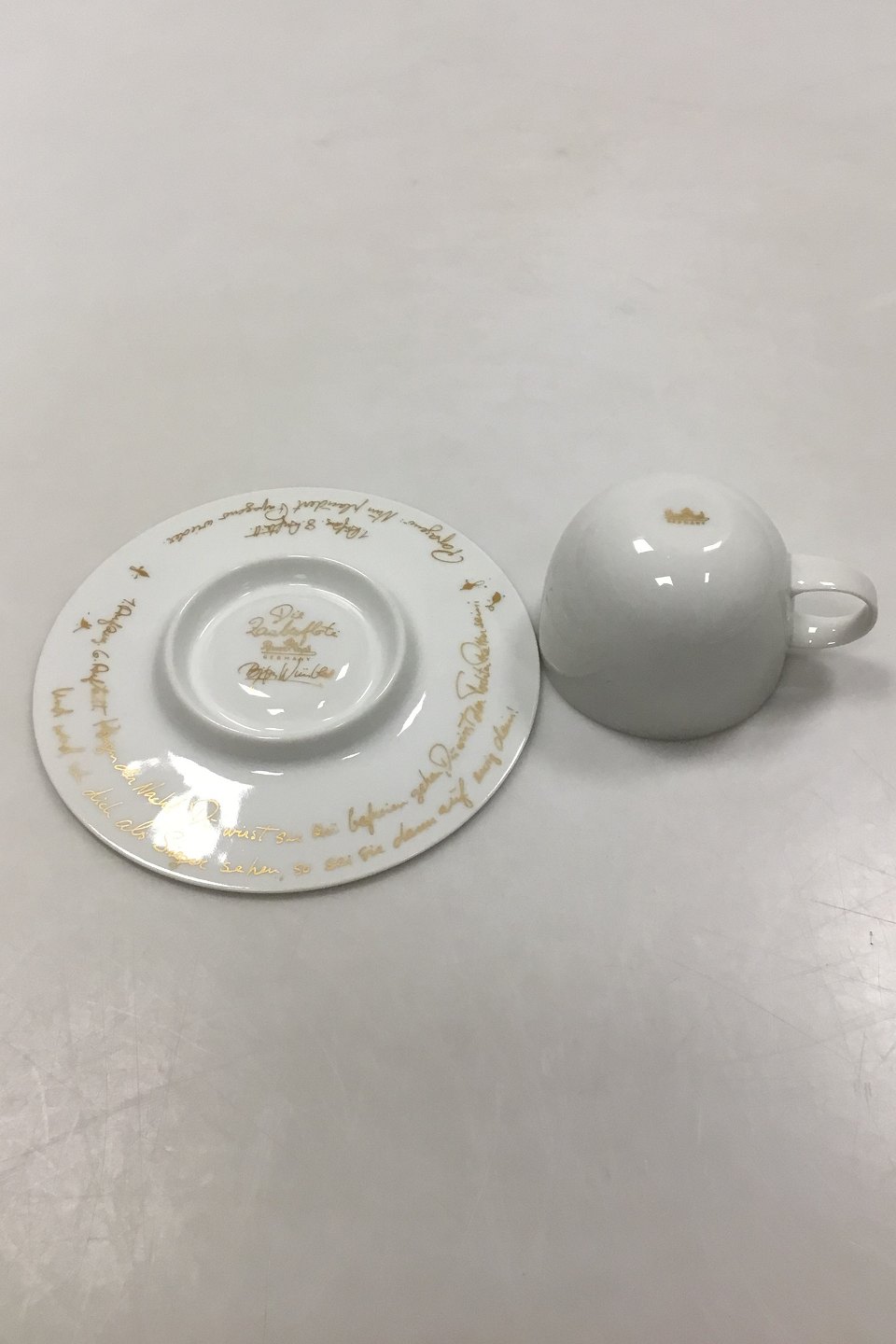 Rosenthal Bjørn Wiinblad Tryllefløjten Mokkakop og underkop. Måler Kop: 4,5 cm x 6 cm dia. Underkop: 12 cm ( Cup: 1.77 in. x 2.36 in. dia. Saucer: 4.72 in. )
