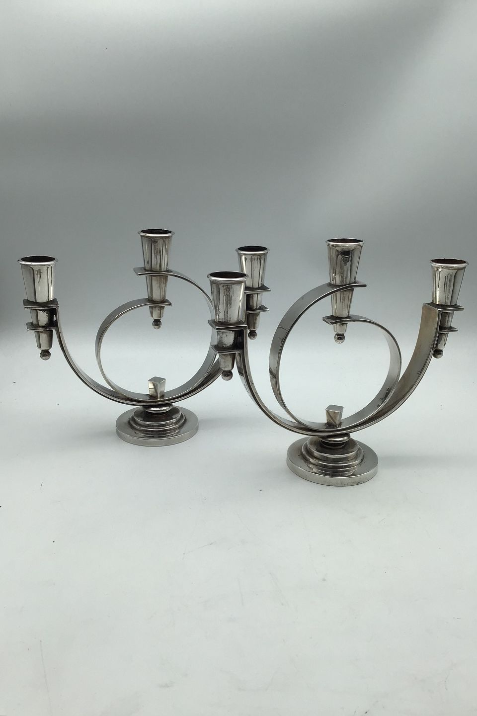 Georg Jensen Sterling Sølv Lysestager No. 670 Oscar Gundlach-Pedersen (2) Måler H 17 cm (6.69 inch) B 19.5 cm (7.67 inch) Samlet Vægt 1057 gr (37.28 oz)