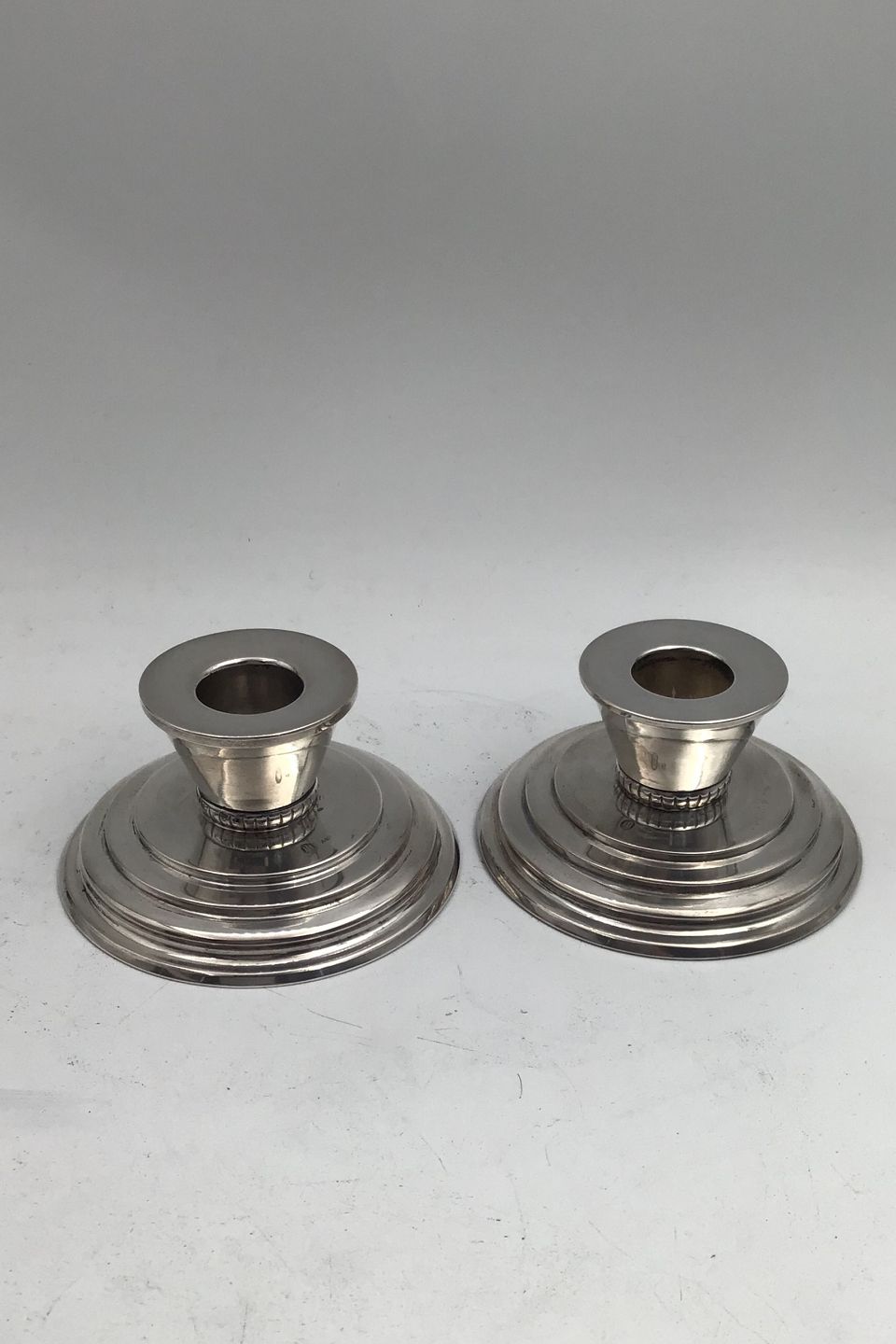 Godtbergsen Sølv Lysestager (2) Måler H 5 cm Diam 10 cm Samlet vægt 348.5 gr. (11.21 oz) (Udfyldt)