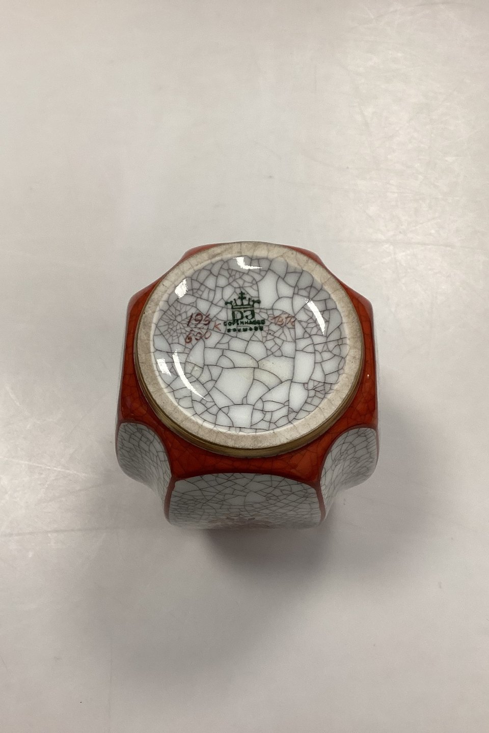 Dahl Jensen Craquelé Vase No. 196/600. Dekoration i sienarød, grøn, hvid og guld. 2. Sortering.