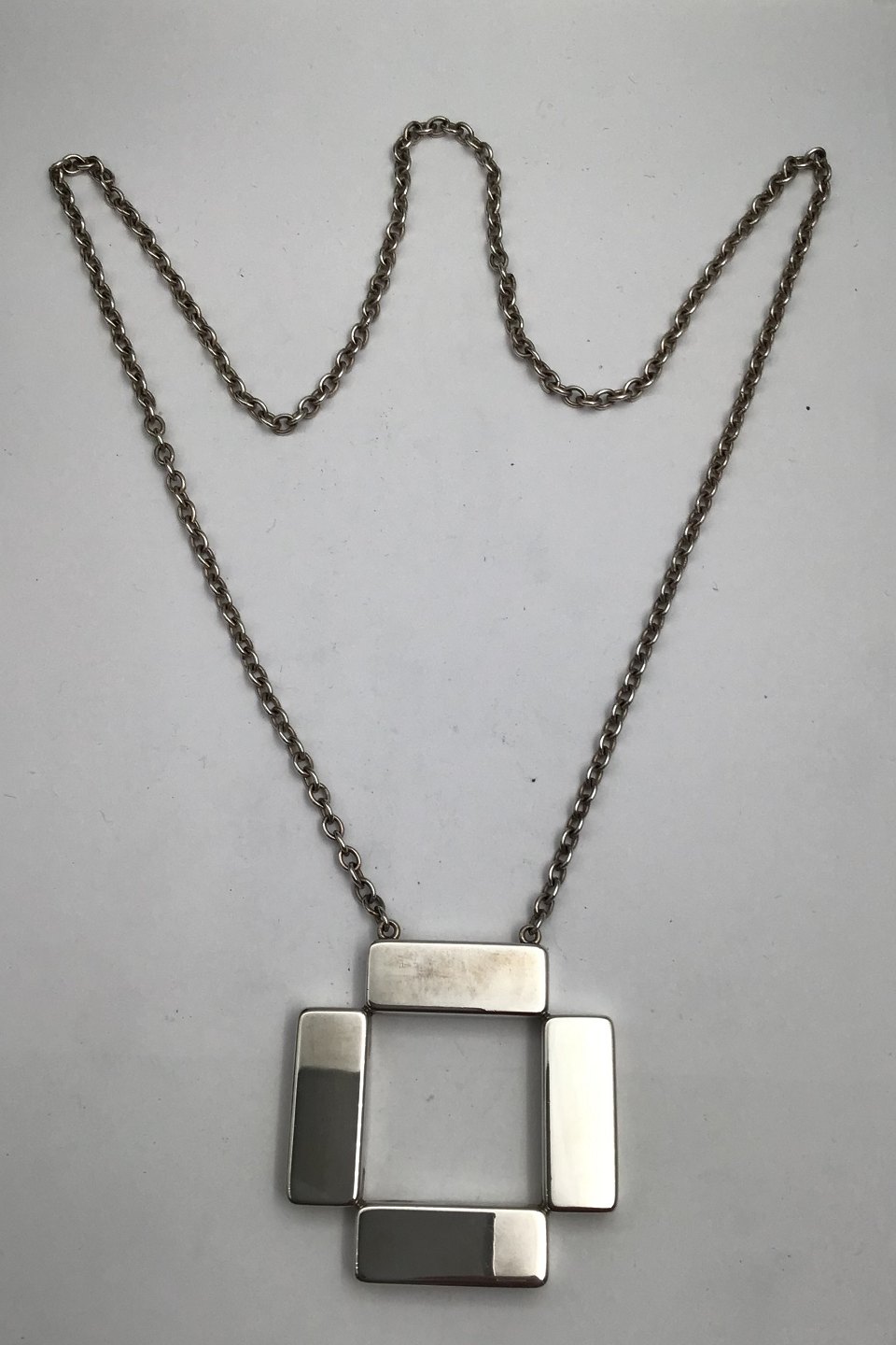 Georg Jensen Sterling Sølv Halskæde No. 379 Astrid Fog Måler Kæde 70 cm (27.55 inch) Vedhæng 5.7 cm x 5.7 cm (2.24 inch x 2.24 inch) Samlet vægt 53.2 gr (1.87 oz)