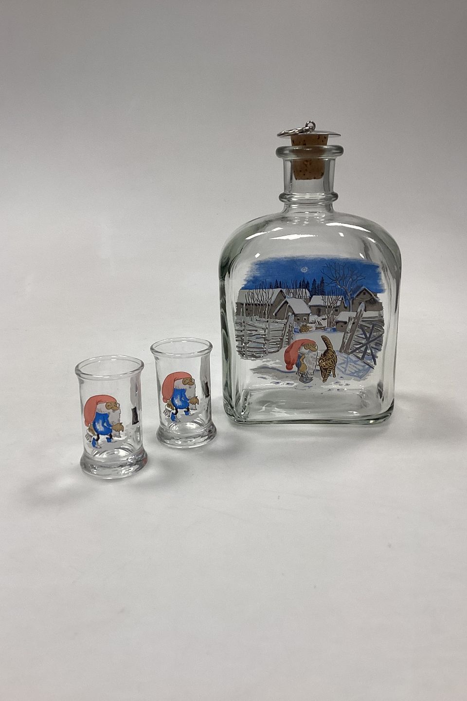 Holmegaard Harald Wiberg Nisse og Kat Snapseflaske med 2 glas. Designet i 1989 efter Harald Wibergs tegninger.