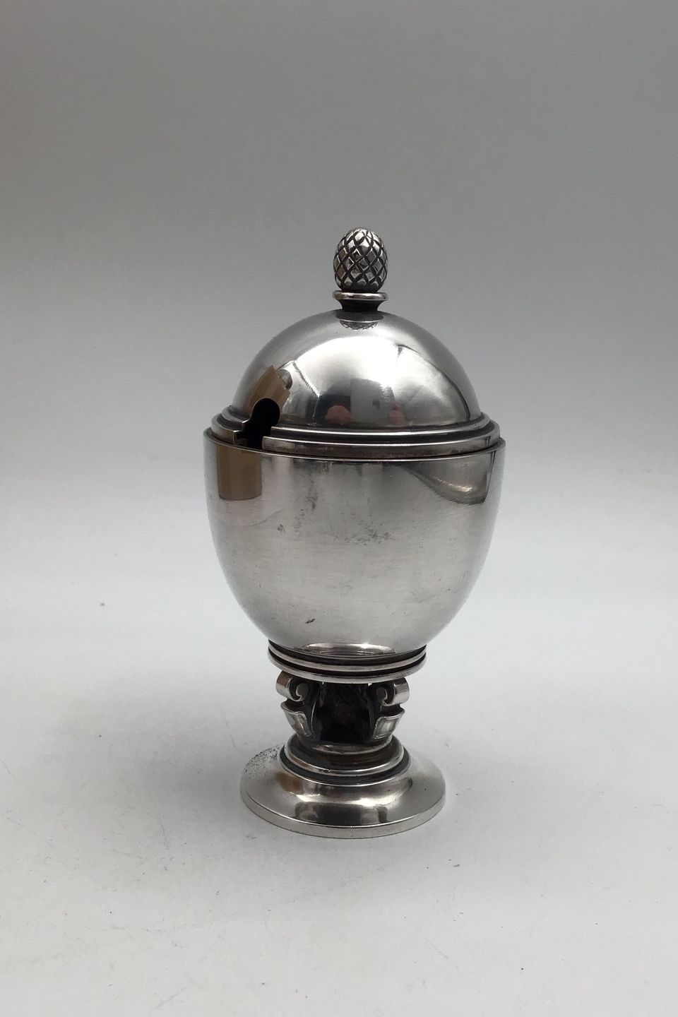 Georg Jensen Sterling Sølv Konge Ægformet Sennepsbæger No 741 Blå Emalje Måler H 10.2 cm (4.01 inch) Diam 5.3 cm (2.08 inch) Vægt 123.76 gr (4.36 oz) (Emalje fejl)