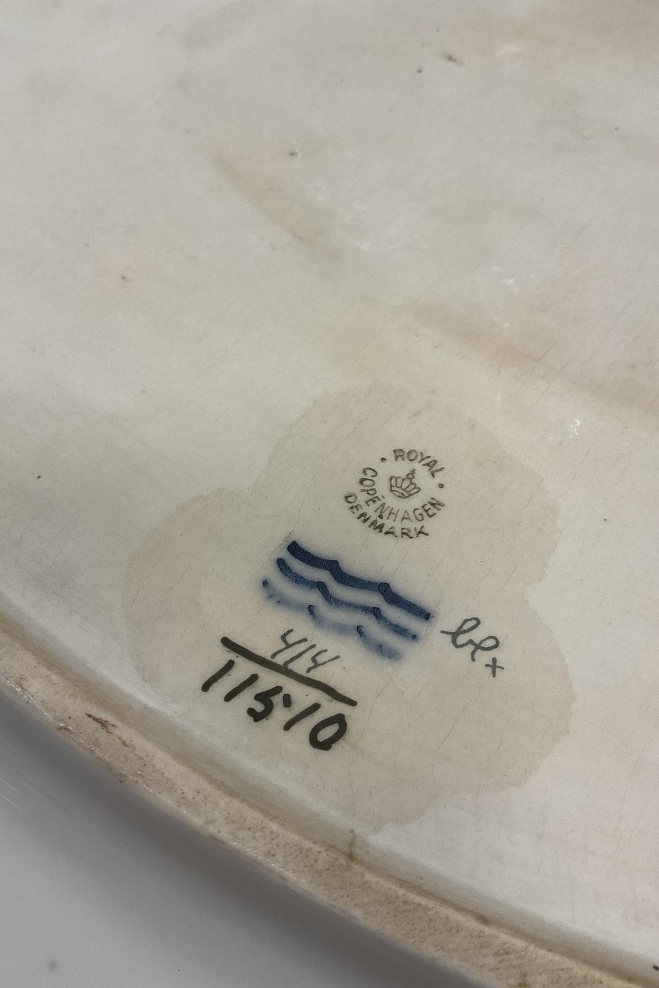 Royal Copenhagen Guld Vifte Stort Ovalt Serverings fad No 11510. 49 x 37 cm (19 19/64 inch x 14 9/16 inch)