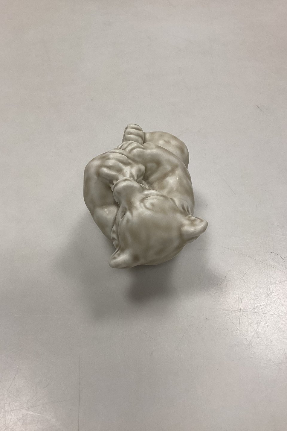 Royal Copenhagen Stentøjsfigur Hvid Bjørneunge No. 21434. Designet af Knud Kyhn. Mat glasur i hvidbeige nuancer.