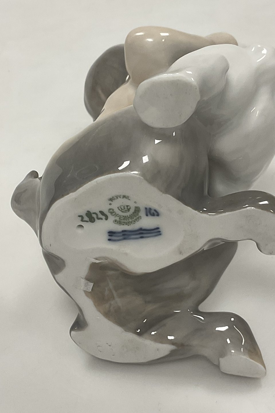 Royal Copenhagen Figur af Faun med hund No 2823. Mærket som 2. sortering. Måler 14,5 cm