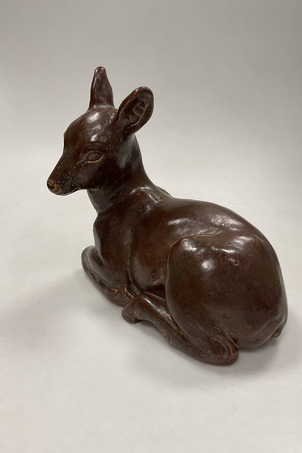 Royal Copenhagen Stentøjsfigur af liggende Hjortekid No 20506. Knud Kyhn. Måler 24 cm(9 29/64 in.)