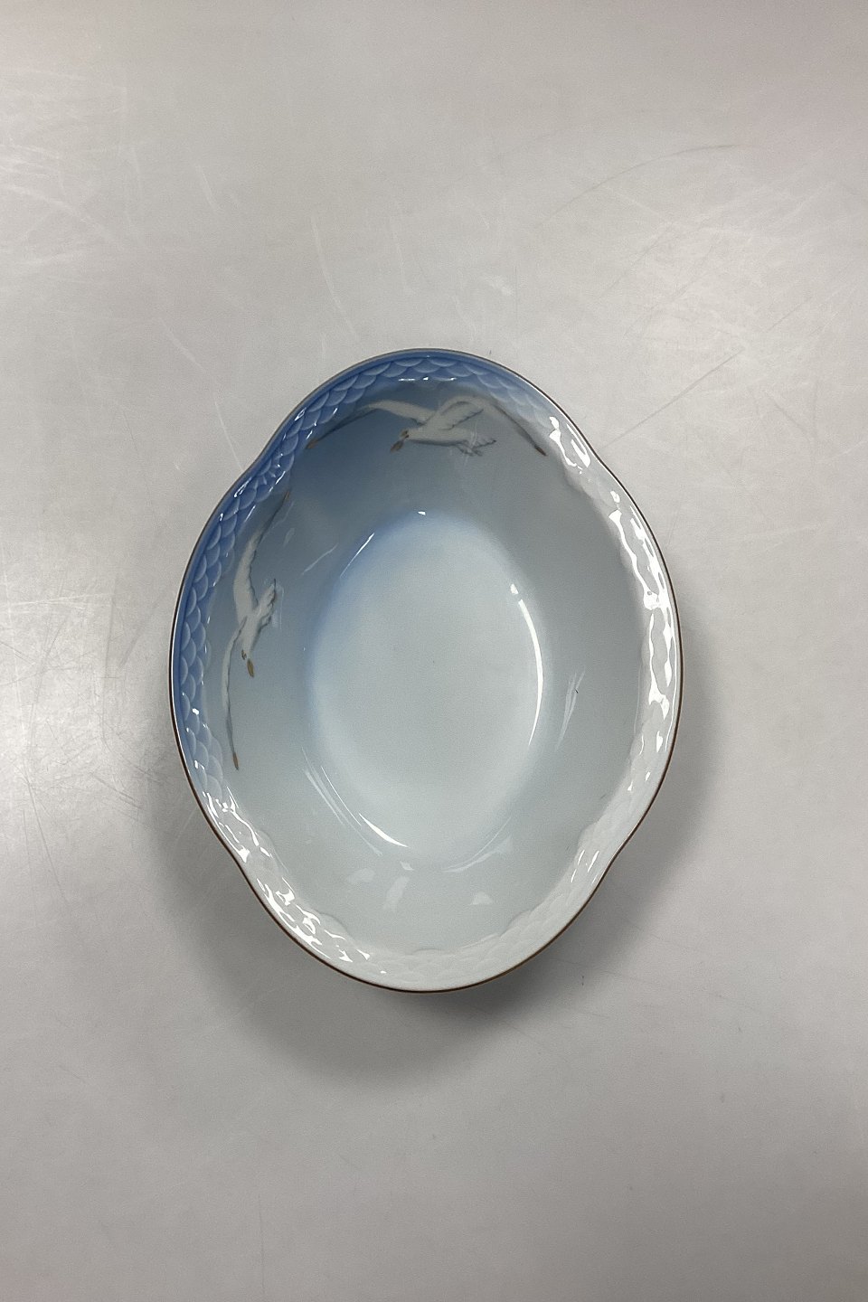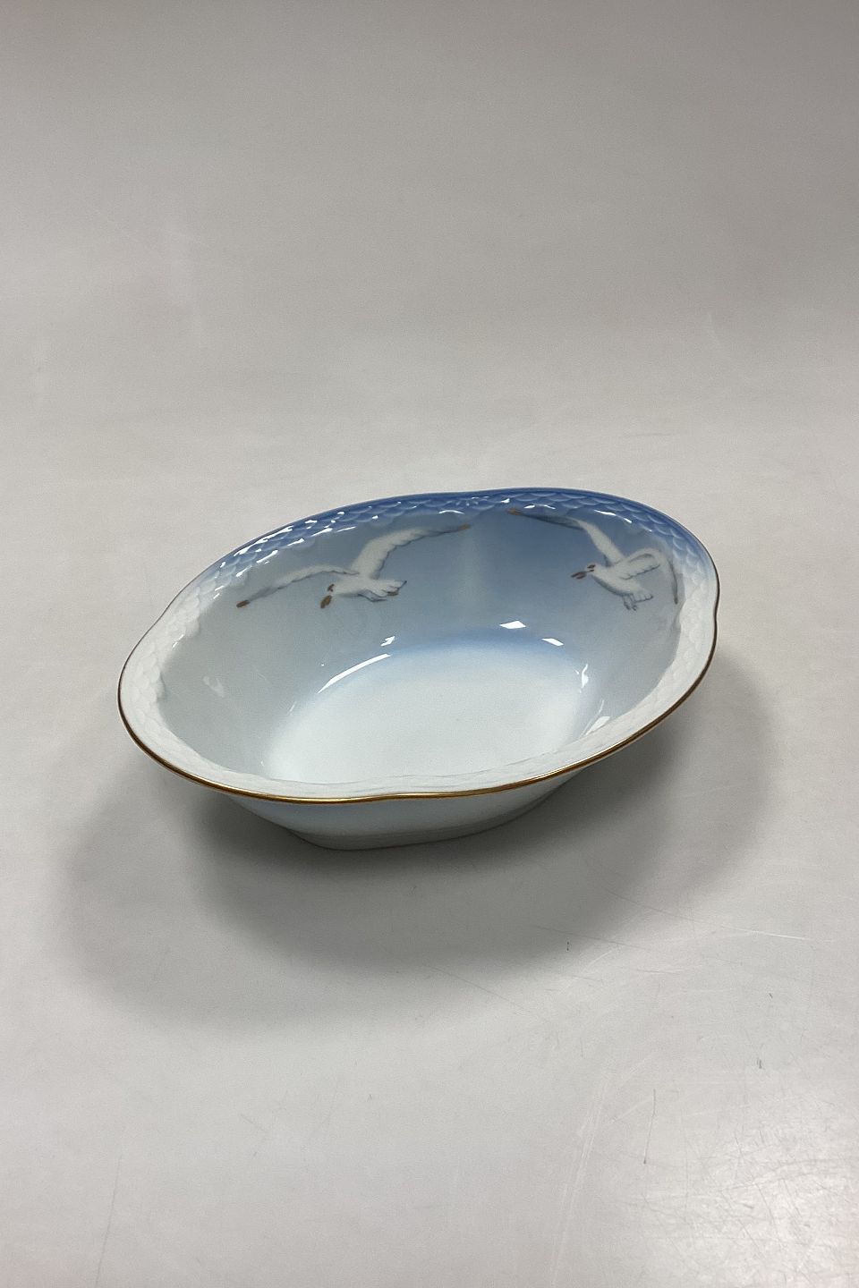 Bing og Grøndahl Måge med Guld Oval Skål No. 12A. Måler 22,5 cm x 17,5 cm / 8,85 in. x 6,88 in.