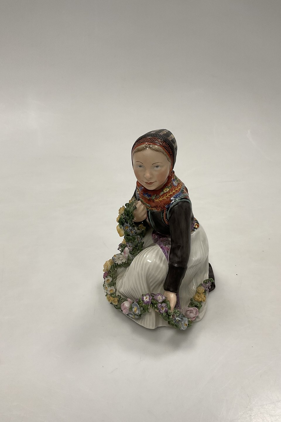 Royal Copenhagen Overglasur figur af Amager Blomster Pige No 12412.