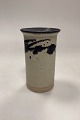 Bjørn Keramik Stentøjsvase. Nistret råhvid bund med mørk blålilla grafisk dekoration.