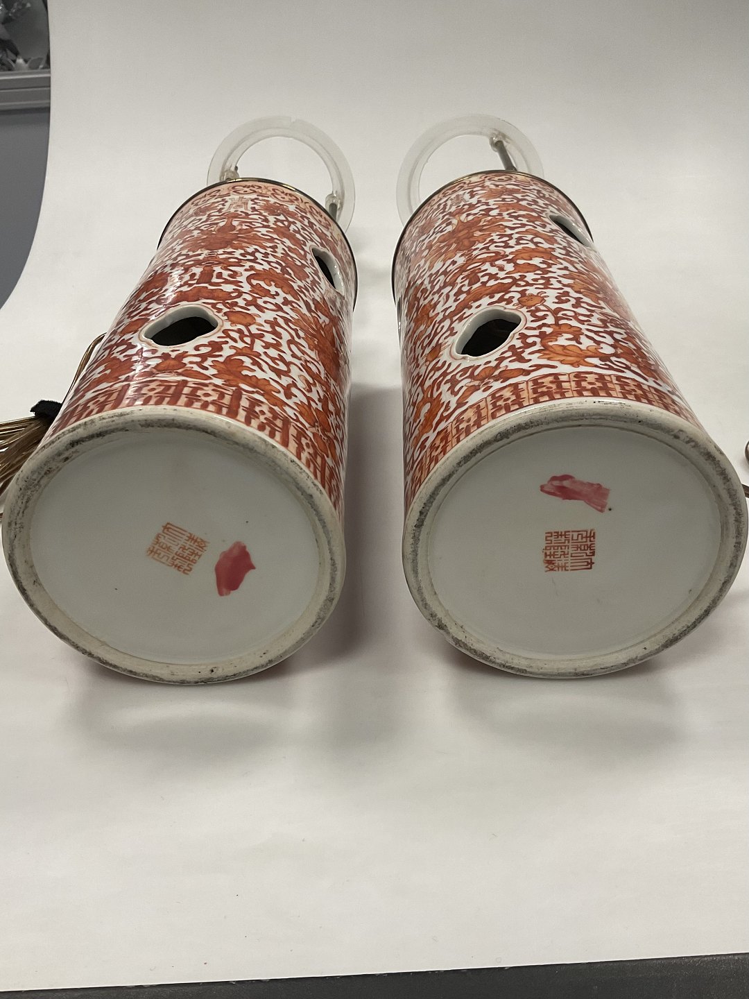 Kinesisk Orientalske Par Lamper af Vaser Jern Rød decoration Qianlong