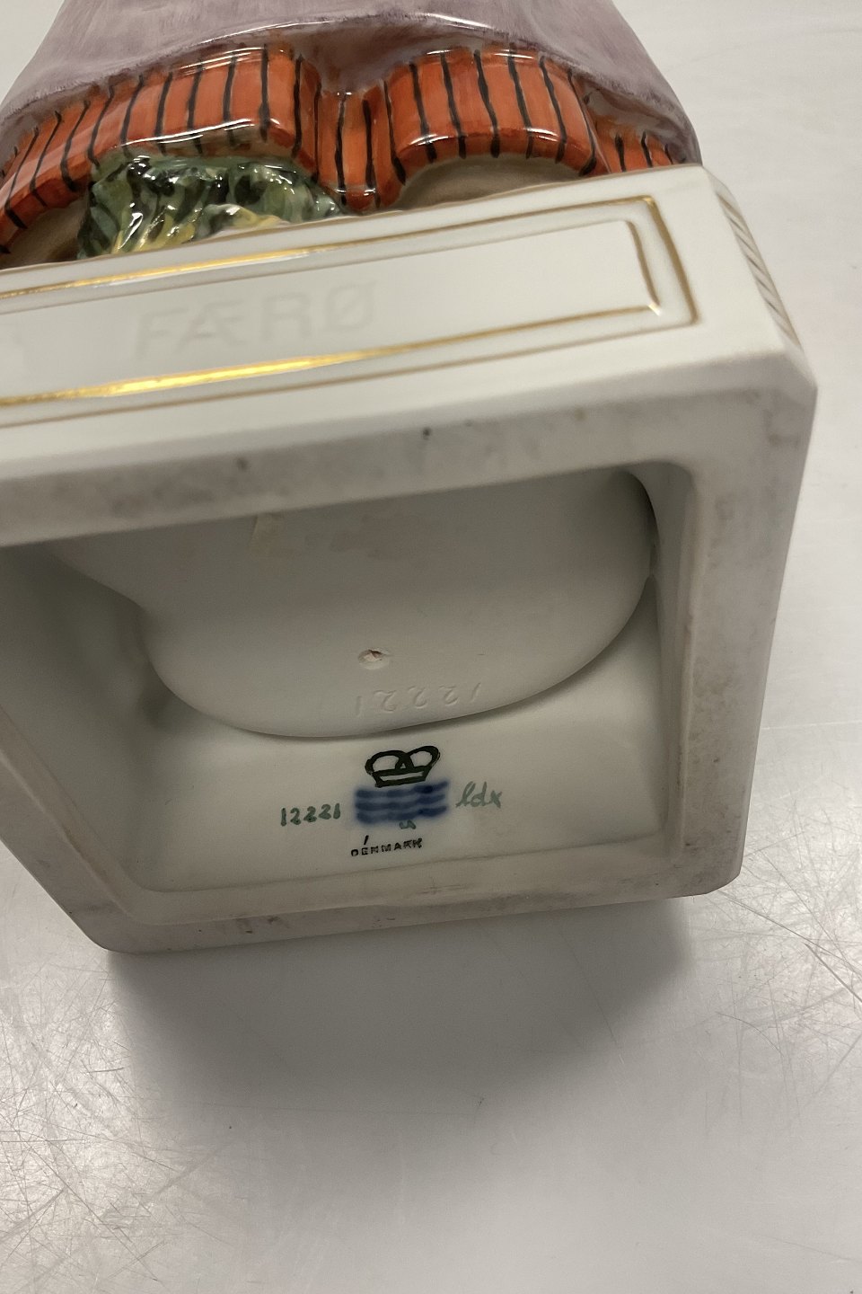 Royal Copenhagen Overglasur Figur Kvinde i Folkedragt Færøerne No. 12221. Måler 31,5cm / 12.40 inch