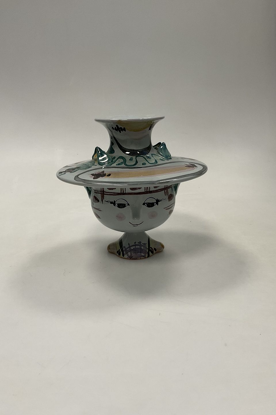 Bjørn Wiinblad Kvindehoved Vase med Hat som Låg No. V13