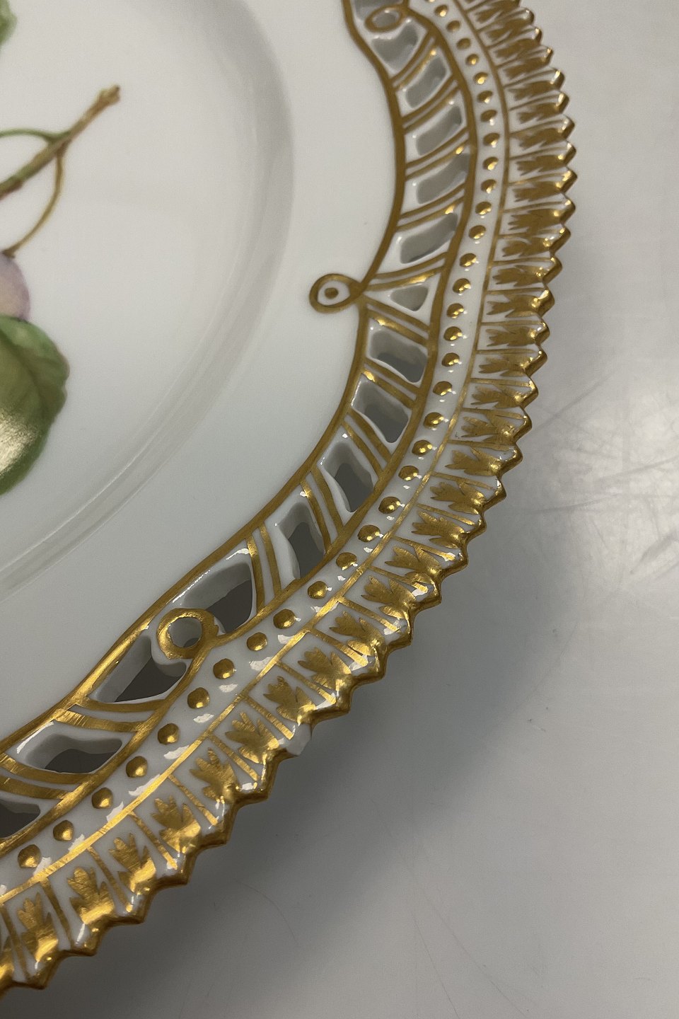 Royal Copenhagen Flora Danica Frugttallerken No. 429/3554. Måler 22,7 cm. (8.93 inch) 1. Sortering. Med gennembrudt kant.